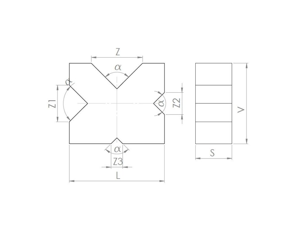 1043-03-130 | Kontrolná a rysovacia podložka s výrezmi NEx, pár, 4x90°, ČSN 25 5533 130x50x110 mm