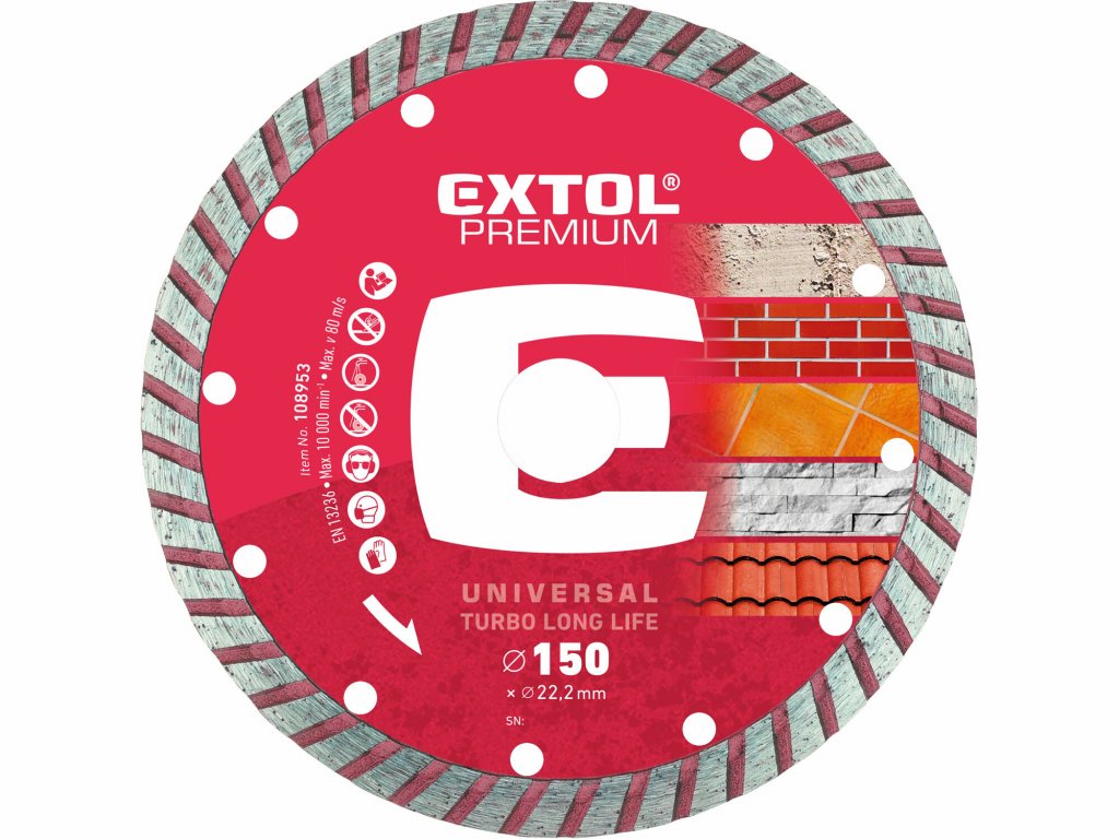 Rezné diamantové kotúče LONG LIFE s predĺženou životnosťou majú vďaka zloženiu diamantovej zmesi a výške segmentu až o 50% väčší rezný výkon, než ostatné Extol Premium kotúče.