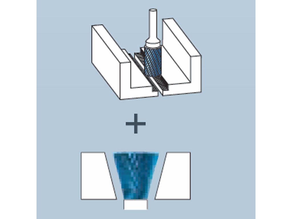 Popis výrobku: Nové frézy COMBI+FORM nabízejí možnosti dosud nevídané víceúčelovosti. COMBI+FORM frézy jsou skvěle vhodné opracování kompletního dílu. Díky spolupráci různých tvarů jsou minimalizovány časy pro výměnu nástrojů, nákup jiných tvarů je nepotřebný. Odstranění otřepů, odjehlení, multifunkční práce jsou možné při použití pouze jednoho nástroje. COMBI+FORM frézy jsou vhodné pro celou řadu kovů a ocelí jako např.: ocel ‹60 HRC, nerez (INOX), niklové a titanové slitiny, měď, mosaz a bronzyDodatočné parametre