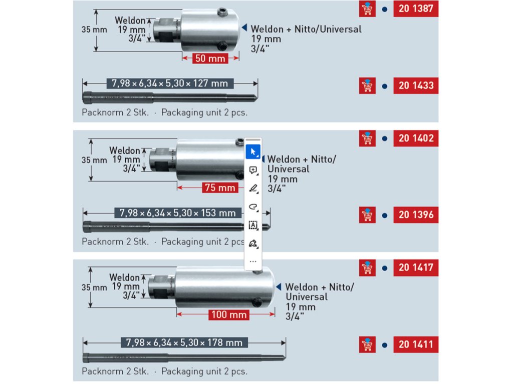 Pre väčšie priemery viď výrobky 201315 a 201316. Pre menšie priemery 201230.