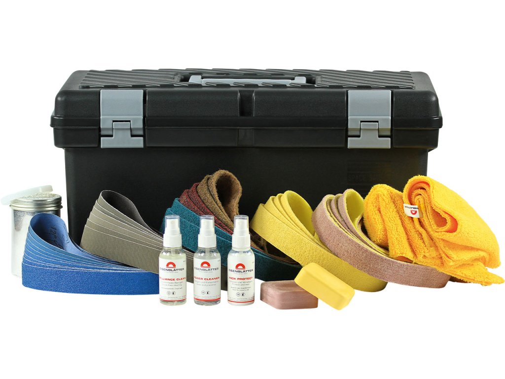 S touto sadou príslušenstva na spracovanie rúr budete mať vždy po ruke správne nástroje. Ideálny doplnok k vášmu stroju. Vhodné pre širokú škálu úloh, od hrubého a jemného brúsenia (priemyselné brúsenie) až po dosiahnutie dokonalého zrkadlového lesku – všetko bezpečne uložené v pevnom prepravnom kufri.