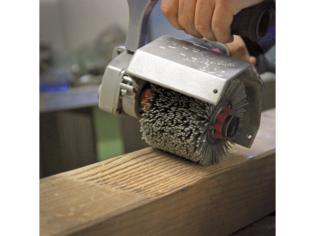 Abrazívna, flexibilná plastová kefa na zdrsňovanie a odhrotovanie kovov a vytváranie rustikálnych efektov na dreve.