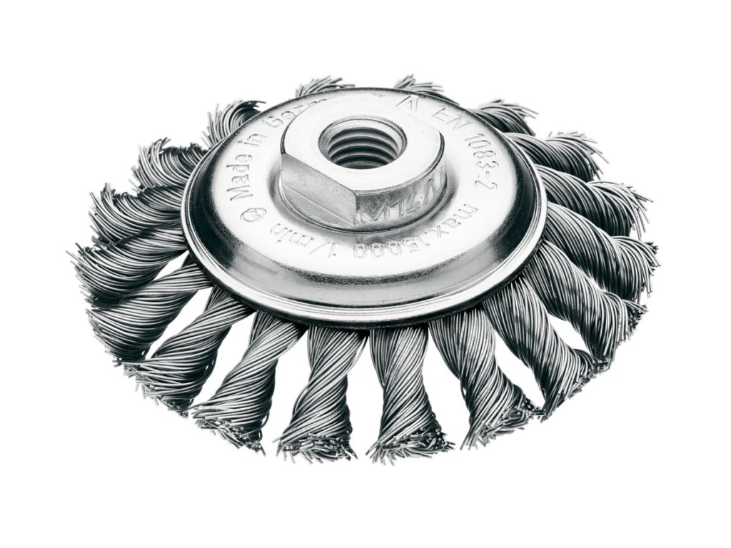 472257V4 | Kužeľová kefa, splietaný drôt 115x12 / 0,50 oceľový drôt rovný