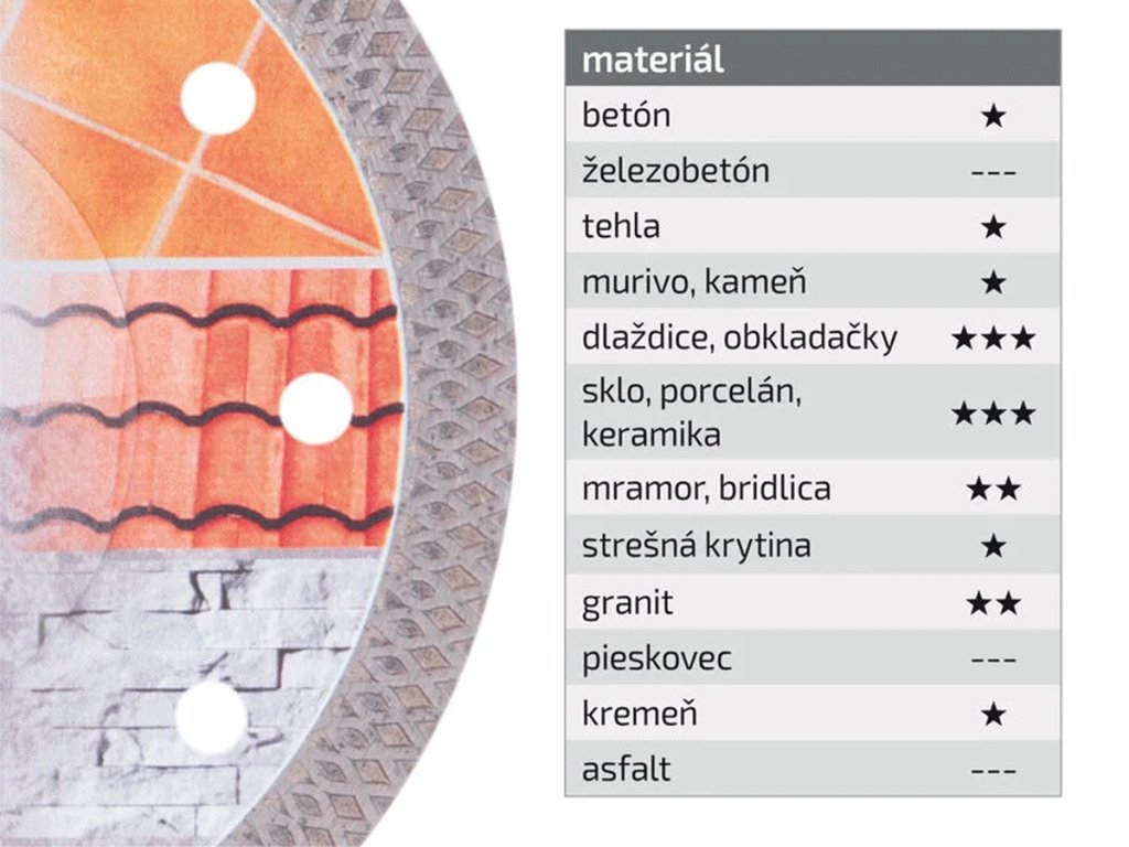 | Obrábaný materiál: | bridlica, dlažba, keramika, mramor, porcelán, kameň, žula - granit |
