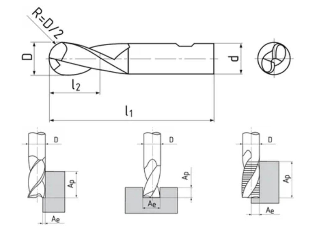 510417.050 AlTiN | Fréza konpírovacia R=½D 5x8x52, Z2, DIN 1889, HSSE-PM, AlTiN,