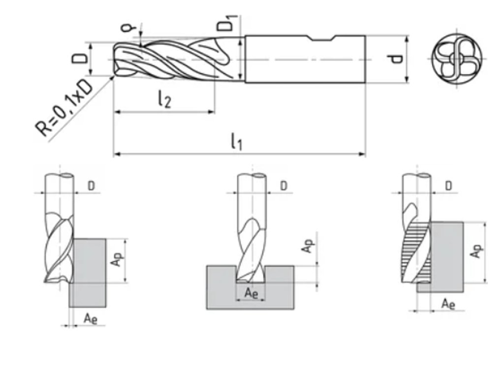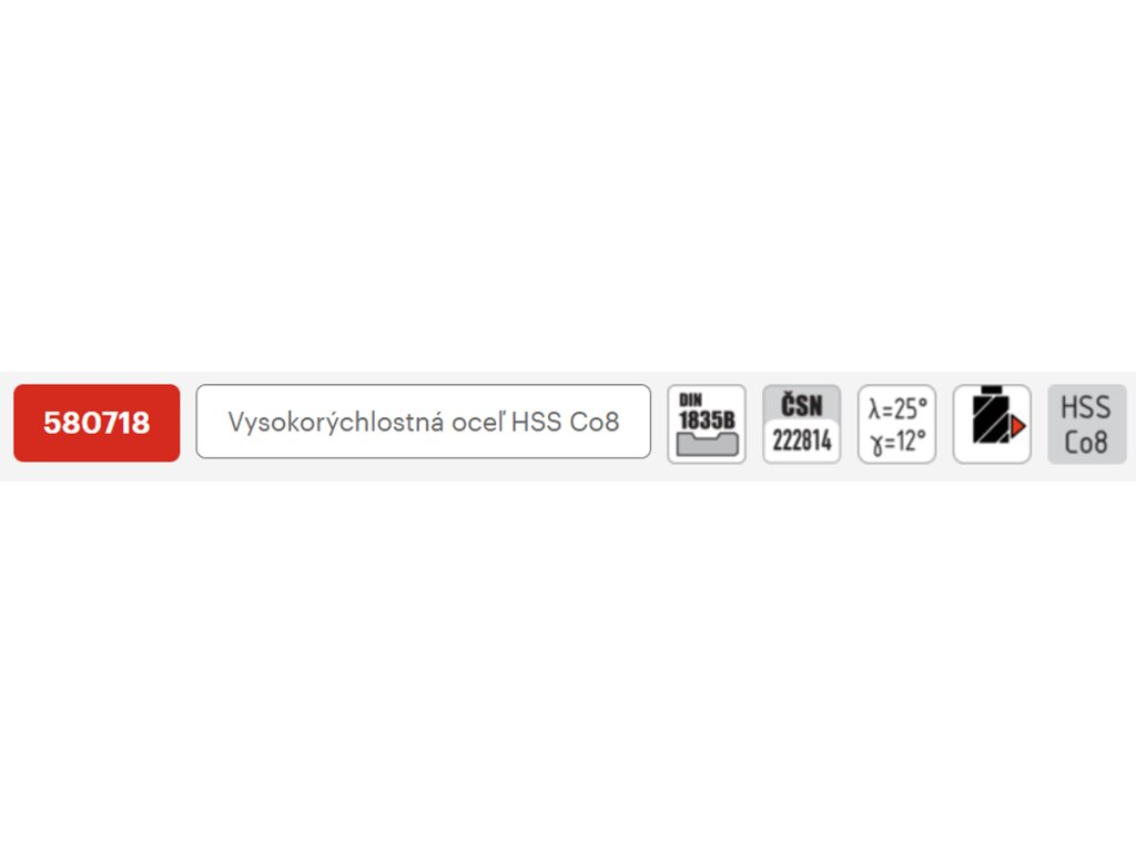 | Materiál nástroja: | HSS Co8 - vysokovýkonná oceľ na frézovanie vysokopevných materiálov |