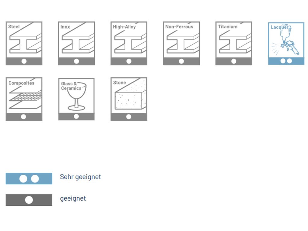 | Obrábaný materiál: | kameň, kompozity, lakovaný povrch, nerez, neželezné kovy, oceľ, vysokolegované zliatiny |