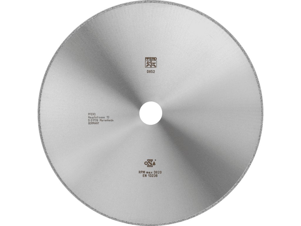 Diamantové řezné kotouče s galvanickým pojivem se zrnitostí D 852 jsou vhodné pro opracování šedé a tvárné litiny (GG a GGG, GJL a GJS) a pro použití s roboty. Výhody: velmi vysoká životnost optimální opracování nízko ležících míst pomocí konstantního průměru nástroje komfortní a rychlé odstranění zapečenin minimalizace vytváření prachu díky pojiva odolnému proti opotřebení a hrubým třískámDodatočné parametre