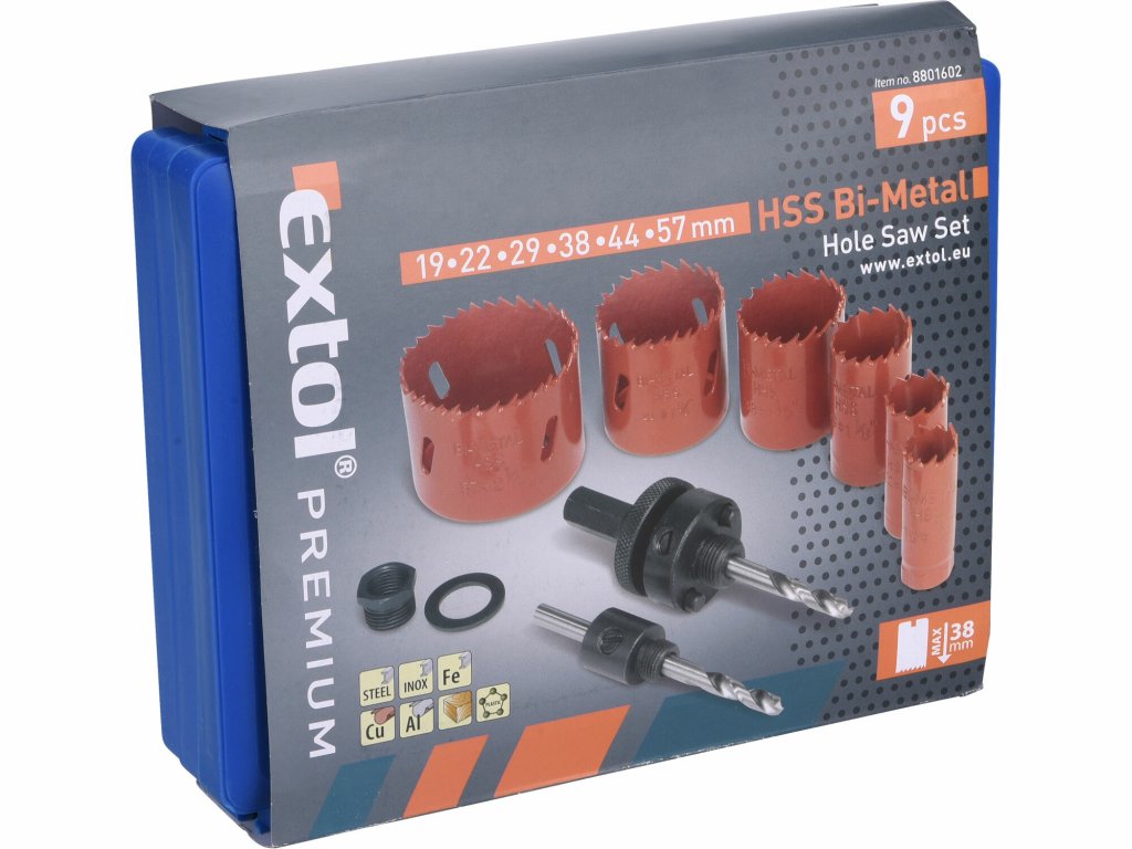 8801602 | Sada korunkových vrtákov, inštalatérska 19-57 mm - 9-dielna