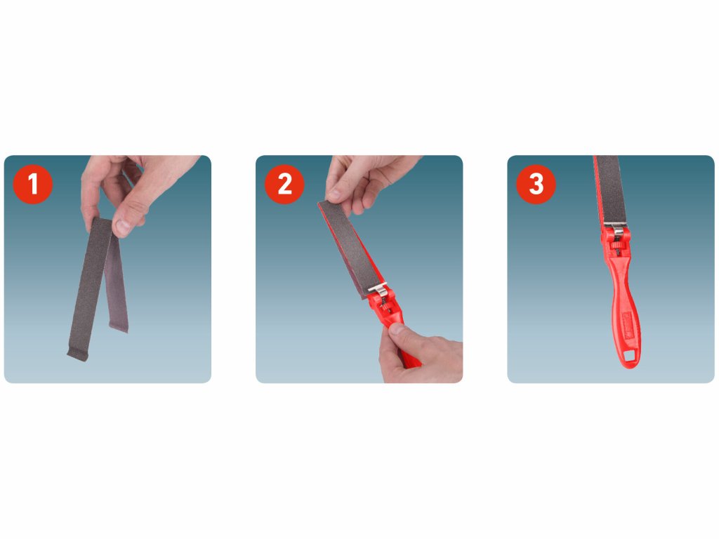 - z jedného štandardného archu brúsneho plátna 280x230mm je možné narezať 9 pásikov pre tento nástroj