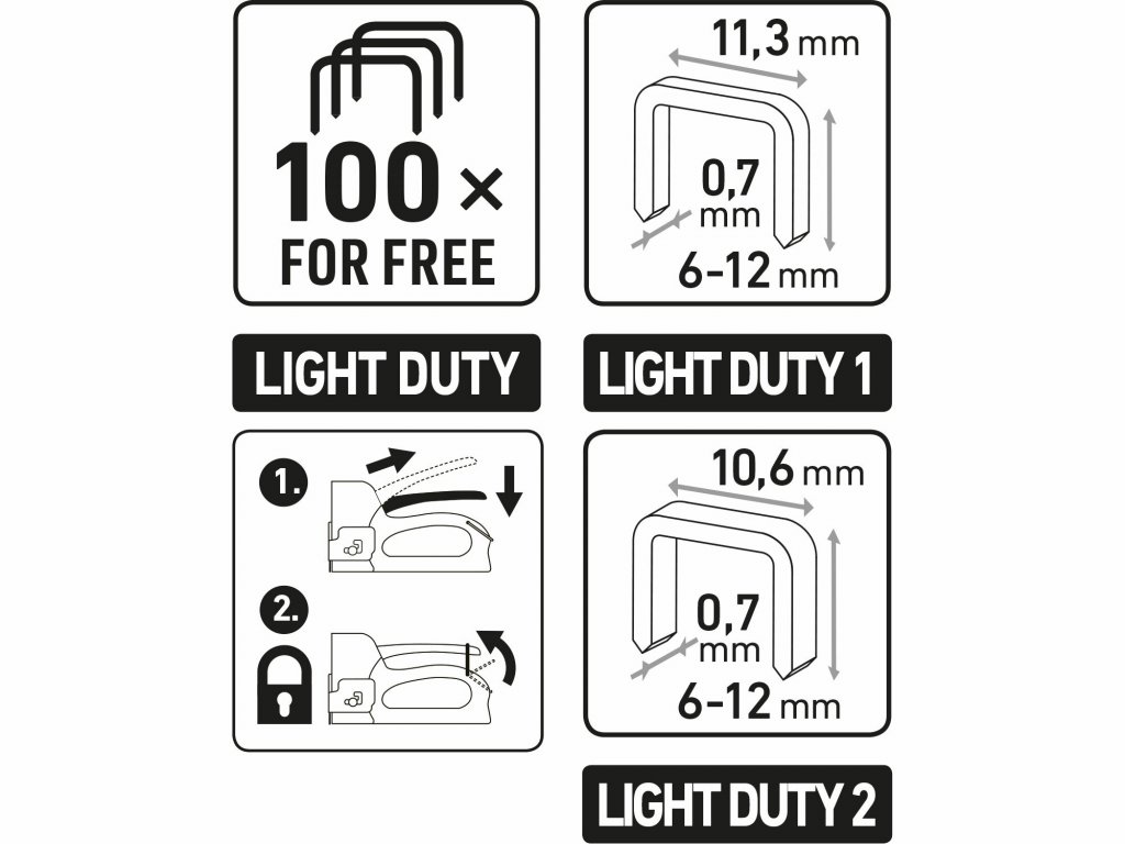 - dĺžka spony 6-12mm, rozteč 10,6mm alebo 11,3mm, hrúbka spony 0,7mm