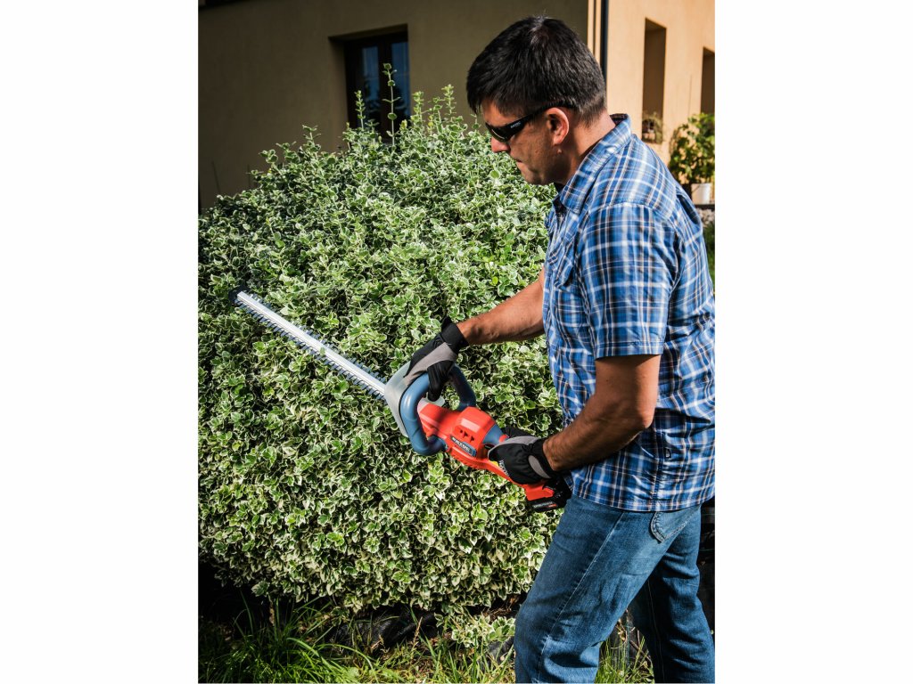 Aku nožnice sú určené na strihanie živého plota v domácich záhradách s vetvičkami hrubými až 16mm. Dobré vyváženie uľahčuje manipuláciu, pogumovaná rukoväť bráni vyšmyknutiu, tlmí vibrácie a spríjemňuje držanie pri práci a silný plastový kryt chráni používateľa pred odletujúcimi kúskami vetiev. Stroj je vybavený bezpečnostnou poistkou, ktorá sa aktivuje pri vykĺznutí z rúk. Vďaka napájaniu z batérie už nie je nutné dávať pozor na napájací kábel a manipulácia s nimi je pohodlnejšia. Akumulátor je vybavený indikáciou nabitia, čo umožňuje užívateľovi rozvrhnúť si dĺžku práce a dať si akumulátor včas nabiť. Li-ion akumulátor je možné kedykoľvek dobíjať, bez toho aby sa tým znižovala jeho kapacita, vplyvom samovybíjania stráca energiu len veľmi pomaly a vydrží dlho nabitý.