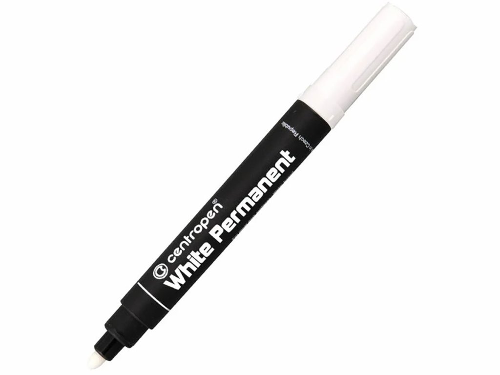 Univerzálny biely svetlostály permanentný popisovač s okrúhlym hrotom s atramentom na vodnej báze, vhodný na väčšinu povrchov. Po zaschnutí odolá vode, poveternostným podmienkam aj oteru.