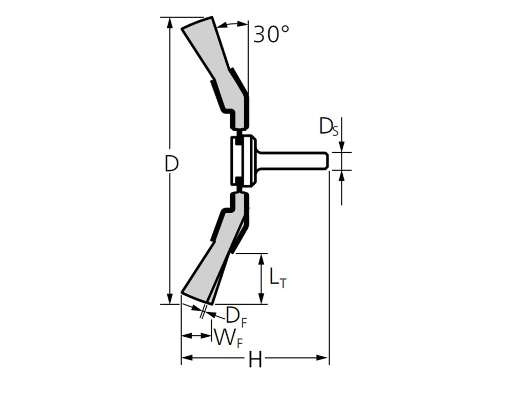 - Pri upínaní kefy dbajte na to, aby bola stopka čo najhlbšie upnutá v klieštine. Toto je obzvlášť dôležité pri použití pri vysokých otáčkach. Minimálna upínacia dĺžka je 10 mm.