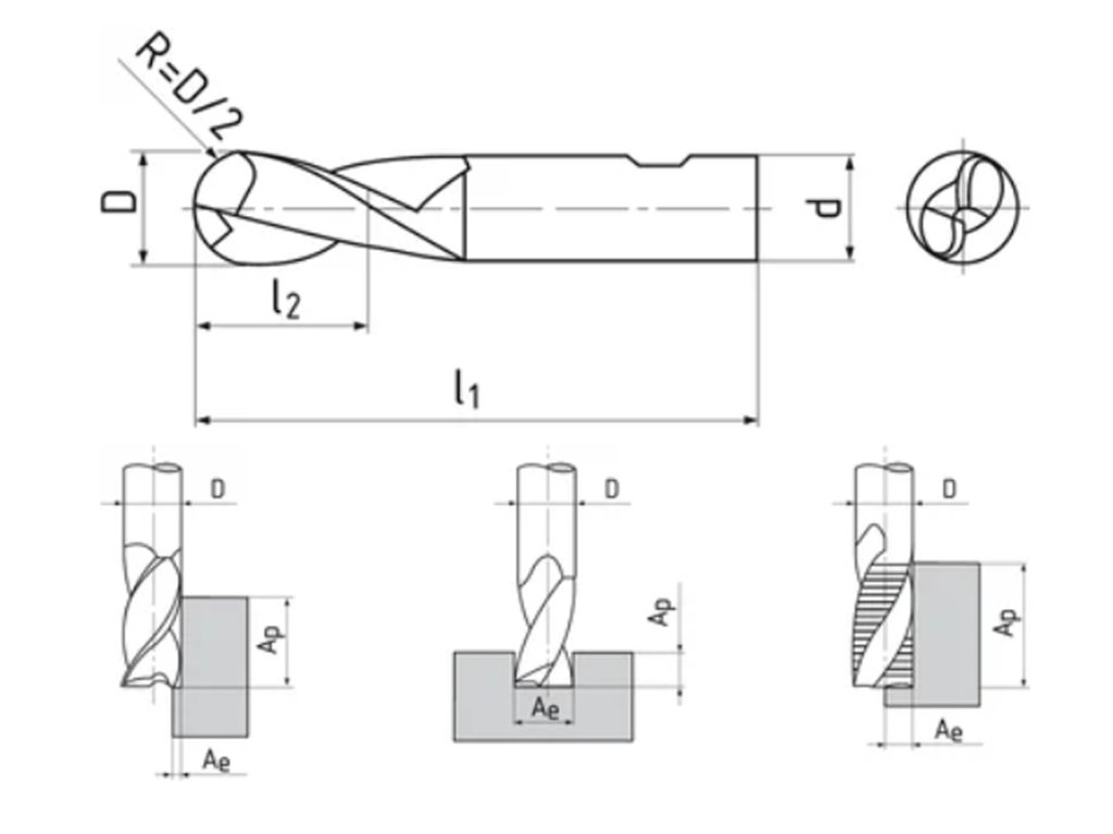 510418.040 | Frézy kopírovacie, dvojzubé s guľovým ostrím R=½D 4x7x51, Z2, DIN 1889, HSSCo8