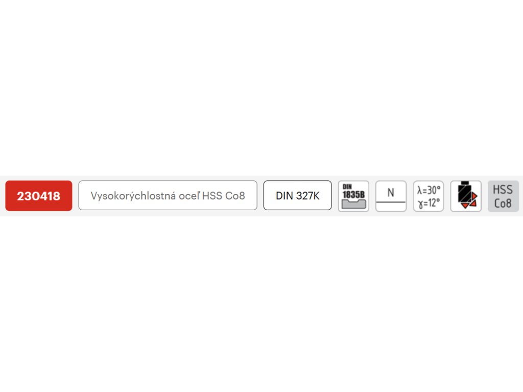| Materiál nástroja: | HSS Co8 - vysokovýkonná oceľ na frézovanie vysokopevných materiálov |