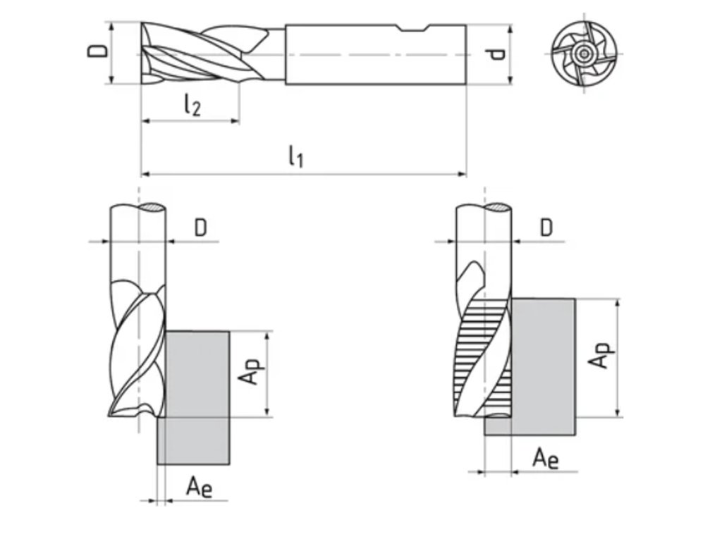 | Typ frézy: | N - univerzálne použitie do pevnosti 900 MPa |