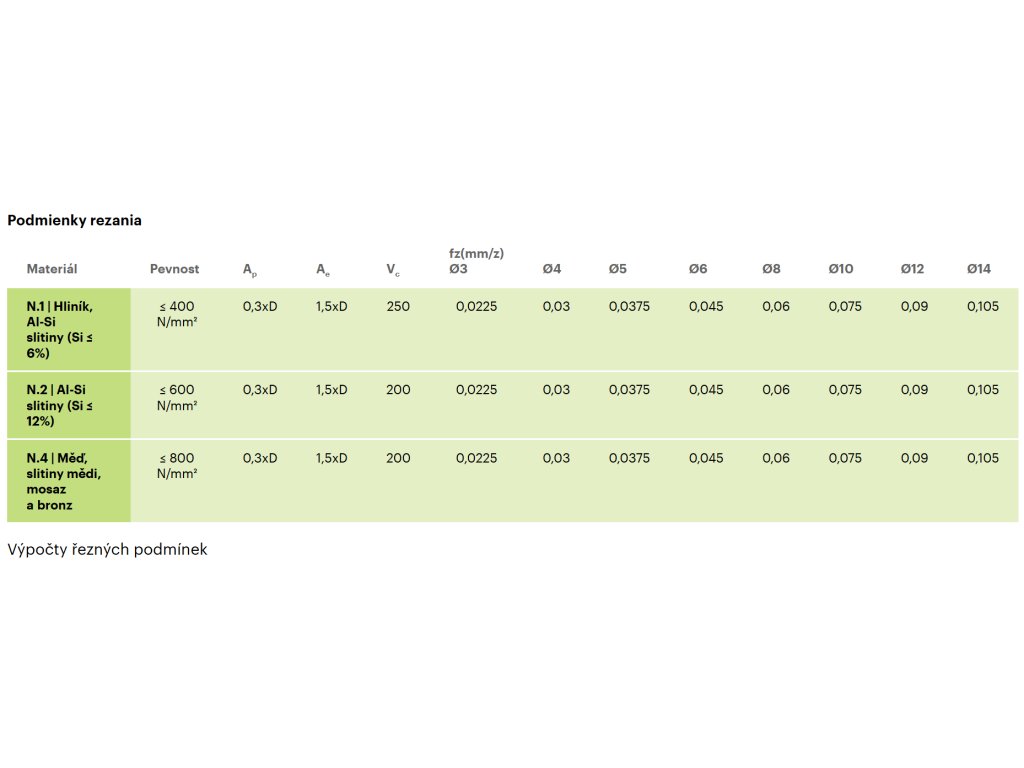 | Obrábaný materiál: | farebné kovy, hliník |