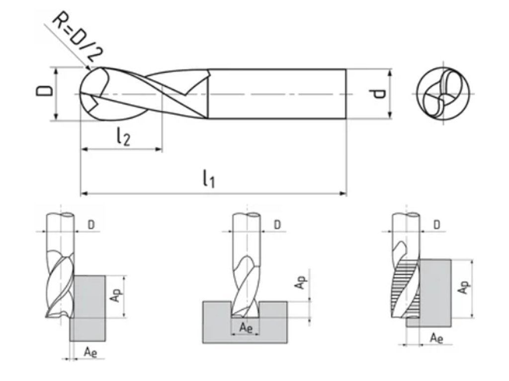 Frézy kopírovacie krátke, 2 zuby, typ N, hladká stopka, vyrobené zo spekaných karbidov (SK - tvrdokov), podľa normy DIN 6527 K, vhodné na frézovanie na hotovo, drážkovanie a hrubovanie.