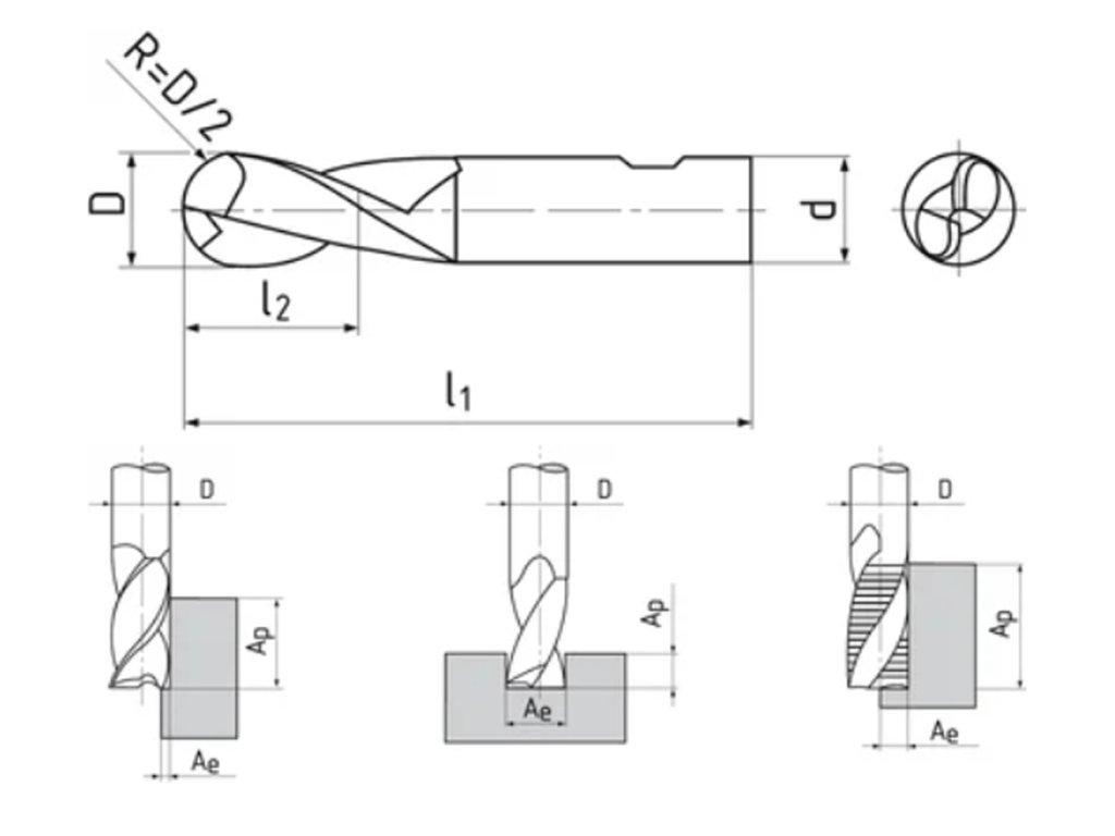 S511612.040 AlTiN | Fréza kopírovacia R=½D 4x8x57, Z2, λ 30°, DIN 6527L, SK, AlTiN, N