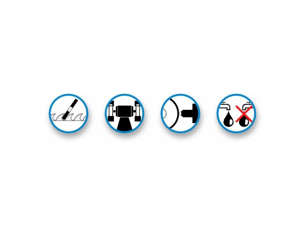 | Materiál: | kameň, nerez, oceľ ˂ 67 HRC, plast, sklolaminát |
